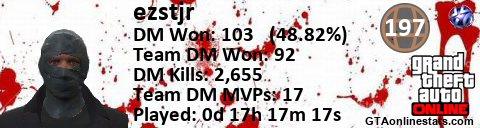 [URL=http://GTAonlinestats.com/showplayer/ezstjr][IMG]http://GTAonlinestats.com/dmsignature/ezstjr/sig.png[/IMG][/URL]