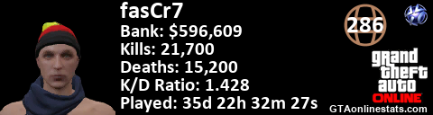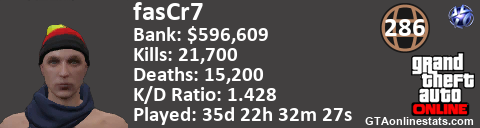 <a href="http://GTAonlinestats.com/showplayer/fasCr7"><img src="http://GTAonlinestats.com/dmsignature/fasCr7/sig.png" alt="fasCr7" border="0" /></a>