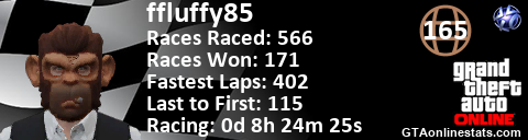 <a href="http://GTAonlinestats.com/showplayer/ffluffy85"><img src="http://GTAonlinestats.com/racesignature/ffluffy85/sig.png" alt="ffluffy85" border="0" /></a>