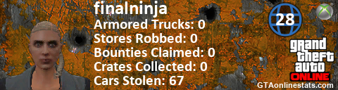 [URL=http://GTAonlinestats.com/showplayer/finalninja/2][IMG]http://GTAonlinestats.com/crimesignature/finalninja/2/sig.png[/IMG][/URL]