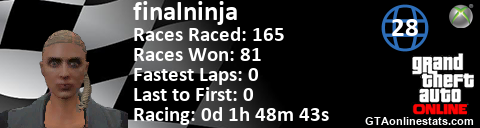 [URL=http://GTAonlinestats.com/showplayer/finalninja/2][IMG]http://GTAonlinestats.com/racesignature/finalninja/2/sig.png[/IMG][/URL]