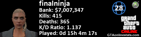 <a href="http://GTAonlinestats.com/showplayer/finalninja/2"><img src="http://GTAonlinestats.com/signature/finalninja/2/sig.png" alt="finalninja" border="0" /></a>