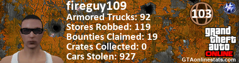 <a href="http://GTAonlinestats.com/showplayer/fireguy109"><img src="http://GTAonlinestats.com/dmsignature/fireguy109/sig.png" alt="fireguy109" border="0" /></a>