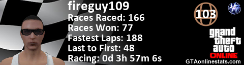 <a href="http://GTAonlinestats.com/showplayer/fireguy109"><img src="http://GTAonlinestats.com/racesignature/fireguy109/sig.png" alt="fireguy109" border="0" /></a>