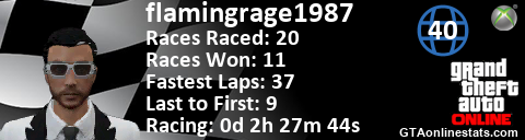 [URL=http://GTAonlinestats.com/showplayer/flamingrage1987][IMG]http://GTAonlinestats.com/racesignature/flamingrage1987/sig.png[/IMG][/URL]