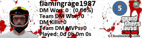 [URL=http://GTAonlinestats.com/showplayer/flamingrage1987/2][IMG]http://GTAonlinestats.com/dmsignature/flamingrage1987/2/sig.png[/IMG][/URL]