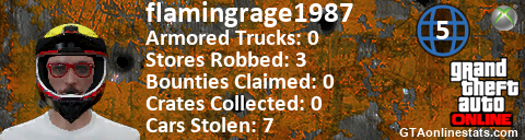 [URL=http://GTAonlinestats.com/showplayer/flamingrage1987/2][IMG]http://GTAonlinestats.com/randomsignature/flamingrage1987/2/sig.png[/IMG][/URL]