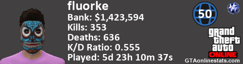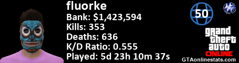 <a href="http://GTAonlinestats.com/showplayer/fluorke"><img src="http://GTAonlinestats.com/signature/fluorke/sig.png" alt="fluorke" border="0" /></a>