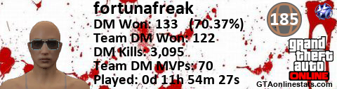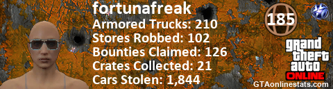 [URL=http://GTAonlinestats.com/showplayer/fortunafreak][IMG]http://GTAonlinestats.com/randomsignature/fortunafreak/sig.png[/IMG][/URL]
