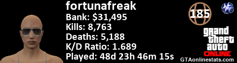 <a href="http://GTAonlinestats.com/showplayer/fortunafreak"><img src="http://GTAonlinestats.com/dmsignature/fortunafreak/sig.png" alt="fortunafreak" border="0" /></a>