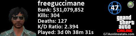 [URL=http://GTAonlinestats.com/showplayer/freeguccimane][IMG]http://GTAonlinestats.com/greysignature/freeguccimane/sig.png[/IMG][/URL]