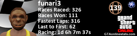 [URL=http://GTAonlinestats.com/showplayer/funari3][IMG]http://GTAonlinestats.com/racesignature/funari3/sig.png[/IMG][/URL]