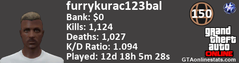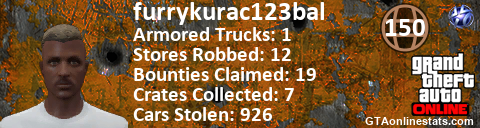 [URL=http://GTAonlinestats.com/showplayer/furrykurac123bal][IMG]http://GTAonlinestats.com/signature/furrykurac123bal/sig.png[/IMG][/URL]