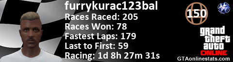 [URL=http://GTAonlinestats.com/showplayer/furrykurac123bal][IMG]http://GTAonlinestats.com/racesignature/furrykurac123bal/sig.png[/IMG][/URL]
