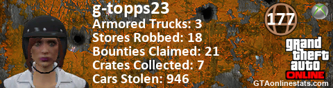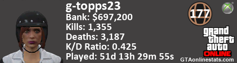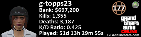 <a href="http://GTAonlinestats.com/showplayer/g-topps23"><img src="http://GTAonlinestats.com/crimesignature/g-topps23/sig.png" alt="G-Topps23" border="0" /></a>