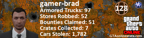 [URL=http://GTAonlinestats.com/showplayer/gamer-brad][IMG]http://GTAonlinestats.com/crimesignature/gamer-brad/sig.png[/IMG][/URL]