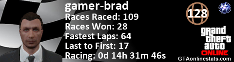 [URL=http://GTAonlinestats.com/showplayer/gamer-brad][IMG]http://GTAonlinestats.com/racesignature/gamer-brad/sig.png[/IMG][/URL]