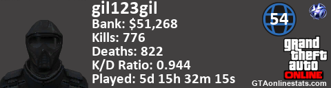 <a href="http://GTAonlinestats.com/showplayer/gil123gil"><img src="http://GTAonlinestats.com/signature/gil123gil/sig.png" alt="Gil123Gil" border="0" /></a>