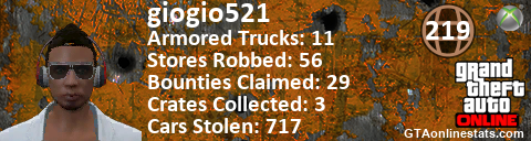 [URL=http://GTAonlinestats.com/showplayer/giogio521][IMG]http://GTAonlinestats.com/signature/giogio521/sig.png[/IMG][/URL]