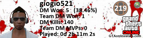 <a href="http://GTAonlinestats.com/showplayer/giogio521"><img src="http://GTAonlinestats.com/dmsignature/giogio521/sig.png" alt="giogio521" border="0" /></a>