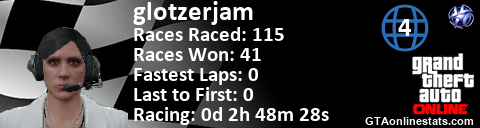 <a href="http://GTAonlinestats.com/showplayer/glotzerjam/2"><img src="http://GTAonlinestats.com/racesignature/glotzerjam/2/sig.png" alt="glotzerjam" border="0" /></a>