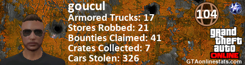 [URL=http://GTAonlinestats.com/showplayer/goucul][IMG]http://GTAonlinestats.com/randomsignature/goucul/sig.png[/IMG][/URL]