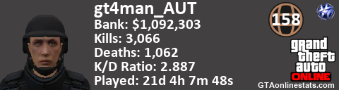 <a href="http://GTAonlinestats.com/showplayer/gt4man_AUT"><img src="http://GTAonlinestats.com/greysignature/gt4man_AUT/sig.png" alt="gt4man_AUT" border="0" /></a>