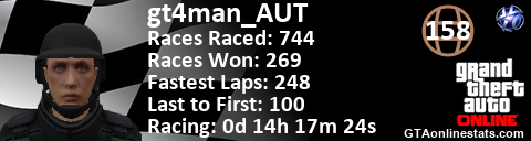 <a href="http://GTAonlinestats.com/showplayer/gt4man_AUT"><img src="http://GTAonlinestats.com/racesignature/gt4man_AUT/sig.png" alt="gt4man_AUT" border="0" /></a>
