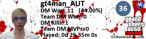 [URL=http://GTAonlinestats.com/showplayer/gt4man_AUT/2][IMG]http://GTAonlinestats.com/signature/gt4man_AUT/2/sig.png[/IMG][/URL]