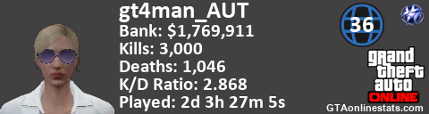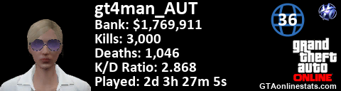 <a href="http://GTAonlinestats.com/showplayer/gt4man_AUT/2"><img src="http://GTAonlinestats.com/dmsignature/gt4man_AUT/2/sig.png" alt="gt4man_AUT" border="0" /></a>