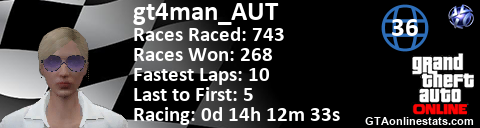 <a href="http://GTAonlinestats.com/showplayer/gt4man_AUT/2"><img src="http://GTAonlinestats.com/racesignature/gt4man_AUT/2/sig.png" alt="gt4man_AUT" border="0" /></a>
