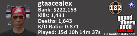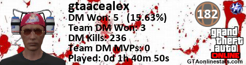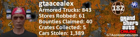 <a href="http://GTAonlinestats.com/showplayer/gtaacealex"><img src="http://GTAonlinestats.com/dmsignature/gtaacealex/sig.png" alt="GtaAcealex" border="0" /></a>