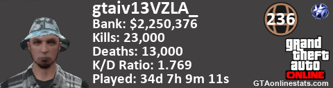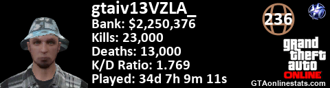 [URL=http://GTAonlinestats.com/showplayer/gtaiv13VZLA_][IMG]http://GTAonlinestats.com/signature/gtaiv13VZLA_/sig.png[/IMG][/URL]