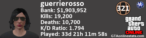 <a href="http://GTAonlinestats.com/showplayer/guerrierosso"><img src="http://GTAonlinestats.com/dmsignature/guerrierosso/sig.png" alt="guerrierosso" border="0" /></a>