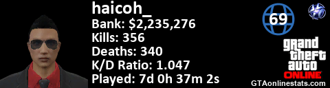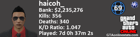 [URL=http://GTAonlinestats.com/showplayer/haicoh_][IMG]http://GTAonlinestats.com/signature/haicoh_/sig.png[/IMG][/URL]