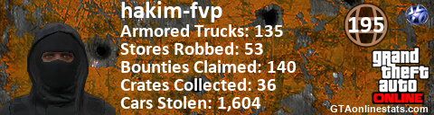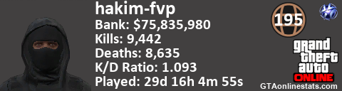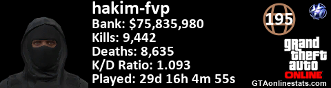 <a href="http://GTAonlinestats.com/showplayer/hakim-fvp"><img src="http://GTAonlinestats.com/signature/hakim-fvp/sig.png" alt="hakim-fvp" border="0" /></a>