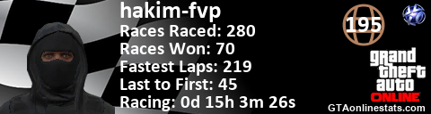 <a href="http://GTAonlinestats.com/showplayer/hakim-fvp"><img src="http://GTAonlinestats.com/racesignature/hakim-fvp/sig.png" alt="hakim-fvp" border="0" /></a>