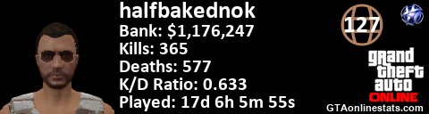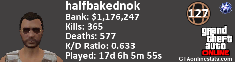 <a href="http://GTAonlinestats.com/showplayer/halfbakednok"><img src="http://GTAonlinestats.com/dmsignature/halfbakednok/sig.png" alt="halfbakednok" border="0" /></a>