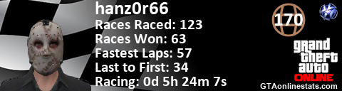 <a href="http://GTAonlinestats.com/showplayer/hanz0r66"><img src="http://GTAonlinestats.com/racesignature/hanz0r66/sig.png" alt="hanz0r66" border="0" /></a>