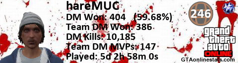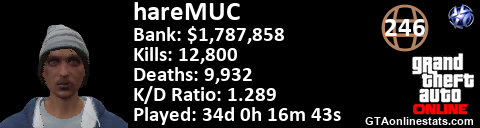 <a href="http://GTAonlinestats.com/showplayer/hareMUC"><img src="http://GTAonlinestats.com/dmsignature/hareMUC/sig.png" alt="hareMUC" border="0" /></a>