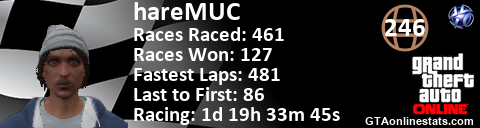 [URL=http://GTAonlinestats.com/showplayer/hareMUC][IMG]http://GTAonlinestats.com/racesignature/hareMUC/sig.png[/IMG][/URL]