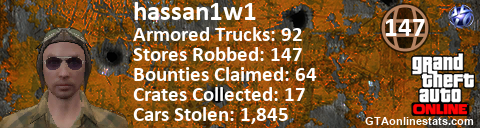 <a href="http://GTAonlinestats.com/showplayer/hassan1w1"><img src="http://GTAonlinestats.com/crimesignature/hassan1w1/sig.png" alt="hassan1w1" border="0" /></a>