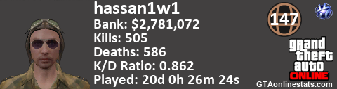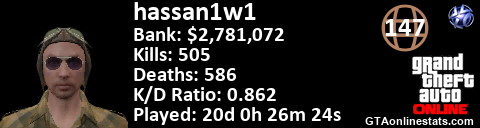 <a href="http://GTAonlinestats.com/showplayer/hassan1w1"><img src="http://GTAonlinestats.com/dmsignature/hassan1w1/sig.png" alt="hassan1w1" border="0" /></a>