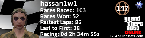 <a href="http://GTAonlinestats.com/showplayer/hassan1w1"><img src="http://GTAonlinestats.com/racesignature/hassan1w1/sig.png" alt="hassan1w1" border="0" /></a>