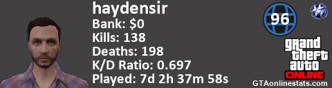 [URL=http://GTAonlinestats.com/showplayer/haydensir][IMG]http://GTAonlinestats.com/greysignature/haydensir/sig.png[/IMG][/URL]