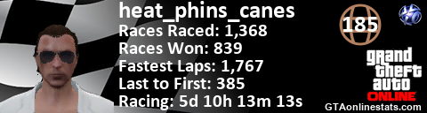 <a href="http://GTAonlinestats.com/showplayer/heat_phins_canes"><img src="http://GTAonlinestats.com/racesignature/heat_phins_canes/sig.png" alt="heat_phins_canes" border="0" /></a>