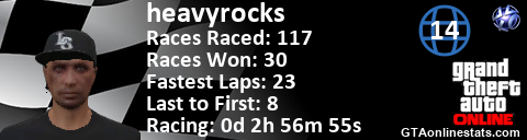 [URL=http://GTAonlinestats.com/showplayer/heavyrocks][IMG]http://GTAonlinestats.com/racesignature/heavyrocks/sig.png[/IMG][/URL]