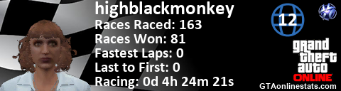 [URL=http://GTAonlinestats.com/showplayer/highblackmonkey/2][IMG]http://GTAonlinestats.com/racesignature/highblackmonkey/2/sig.png[/IMG][/URL]