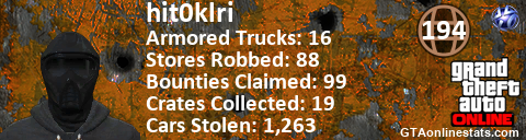 <a href="http://GTAonlinestats.com/showplayer/hit0klri"><img src="http://GTAonlinestats.com/crimesignature/hit0klri/sig.png" alt="Hit0klri" border="0" /></a>