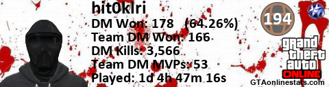 [URL=http://GTAonlinestats.com/showplayer/hit0klri][IMG]http://GTAonlinestats.com/randomsignature/hit0klri/sig.png[/IMG][/URL]